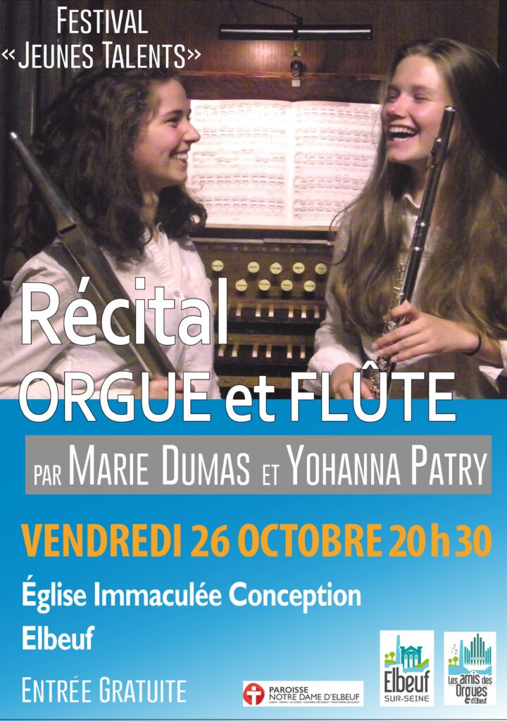 26 octobre : Concert Orgue et flûte à l’Immaculée-Conception