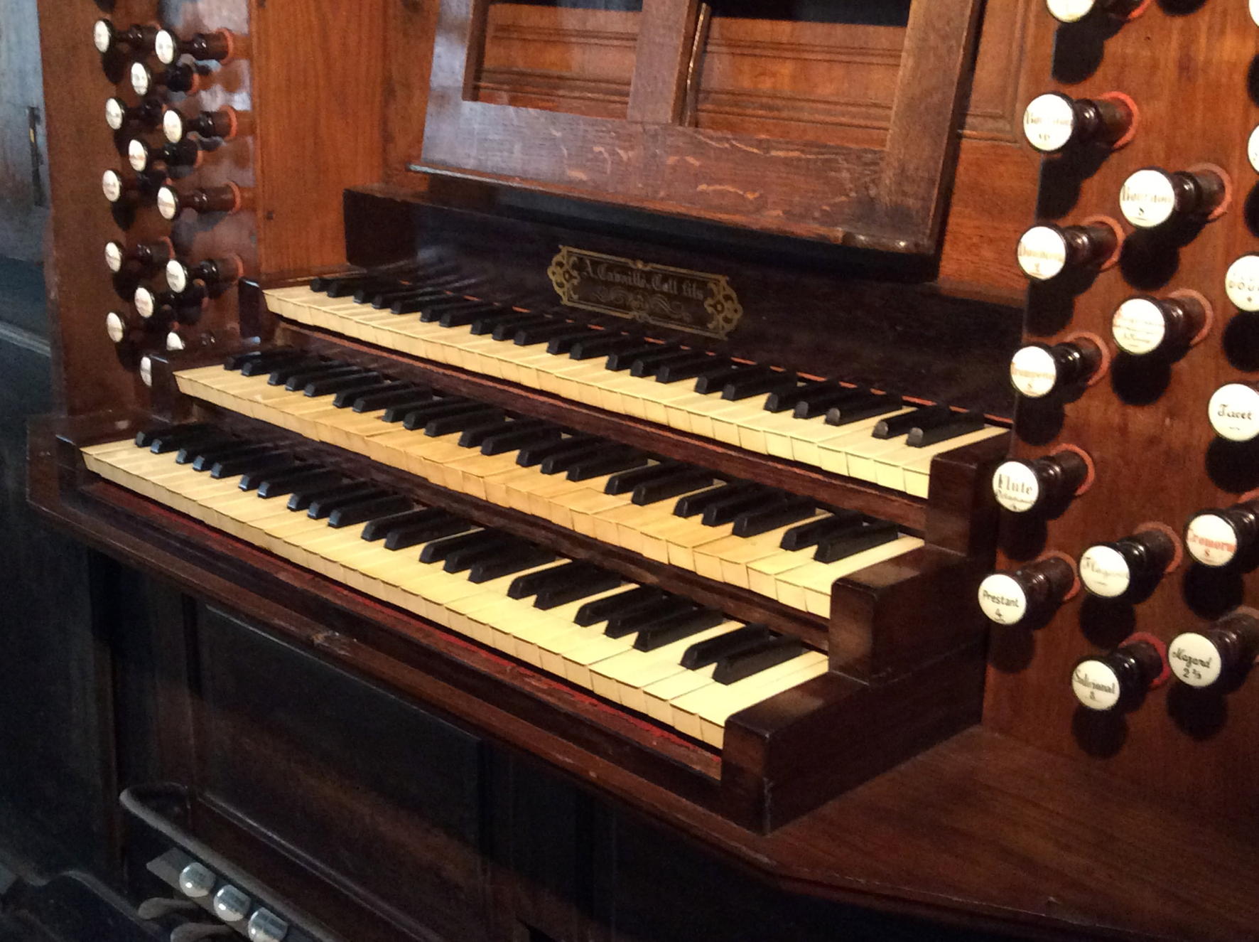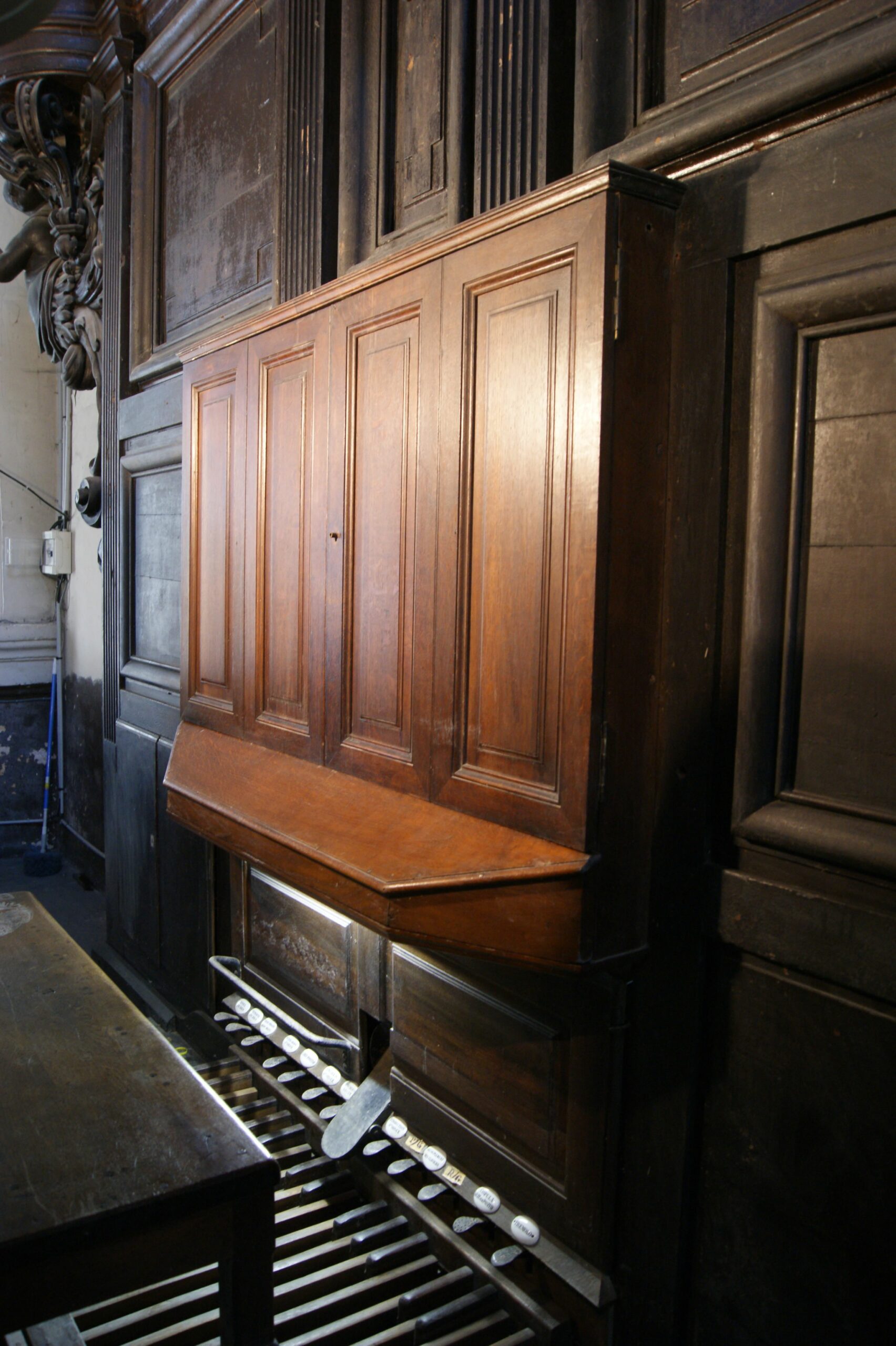 | Flûte traversière 8 Gambe 8 Voix Céleste 8 Flûte octaviante 4 Octavin 2 Trompette 8 Basson-Hautbois 8 Voix Humaine 8 | Flûte 16 Flûte 8 Bombarde 16 Trompette 8 Clairon 4 |